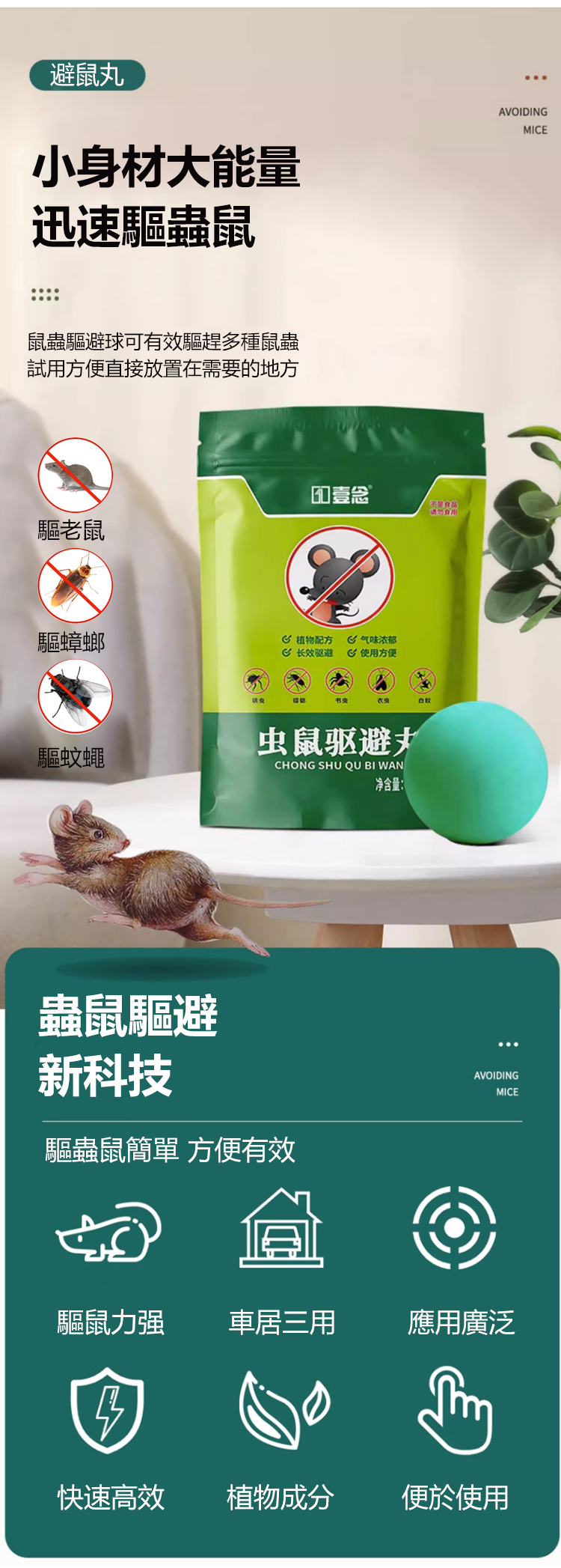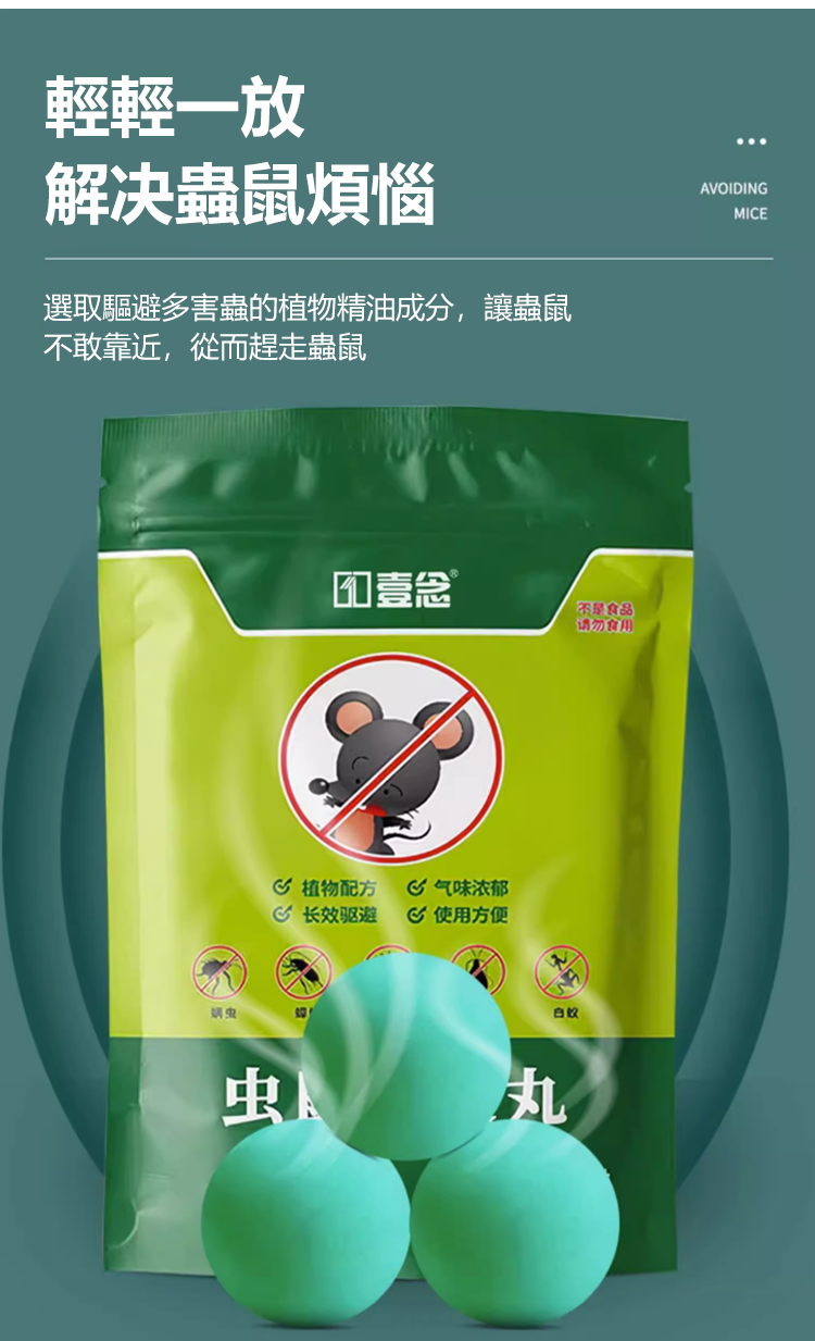 半小時前【驅蟲避鼠丸】消滅老鼠,驅蟲蚊蟲,讓你全年遠離老鼠和蚊蟲。對人和寵物無害,可放心使用! - 老鼠跑光光 【超值特惠】五袋入組NT$998