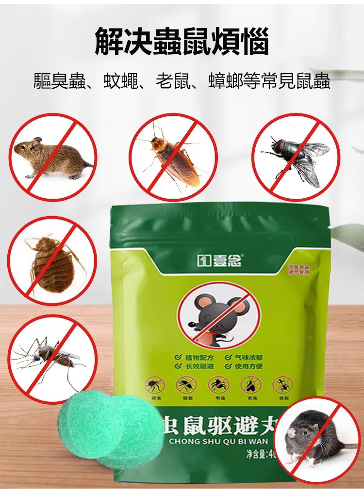 15分鐘前【驅蟲避鼠丸】消滅老鼠,驅蟲蚊蟲,讓你全年遠離老鼠和蚊蟲。對人和寵物無害,可放心使用! - 驅趕鼠蟲,安全一整年【狂殺特賣】十袋入組NT$1298